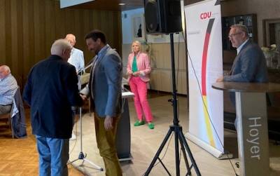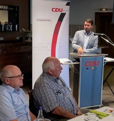 „Als die Einladung zur heutigen Ehrung aus der CDU-Kreisgeschäftsstelle verschickt worden ist, habe ich nicht damit gerechnet, dass ich heute in doppelter Funktion bei Euch sein würde: Als Europakandidat und als CDU-Kreisvorsitzender – ein Amt, das mir, wie ihr wisst, quasi vor die Füße gefallen ist.